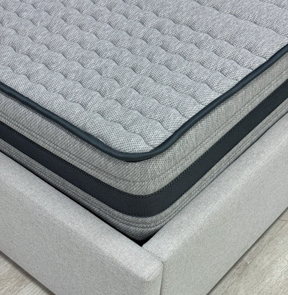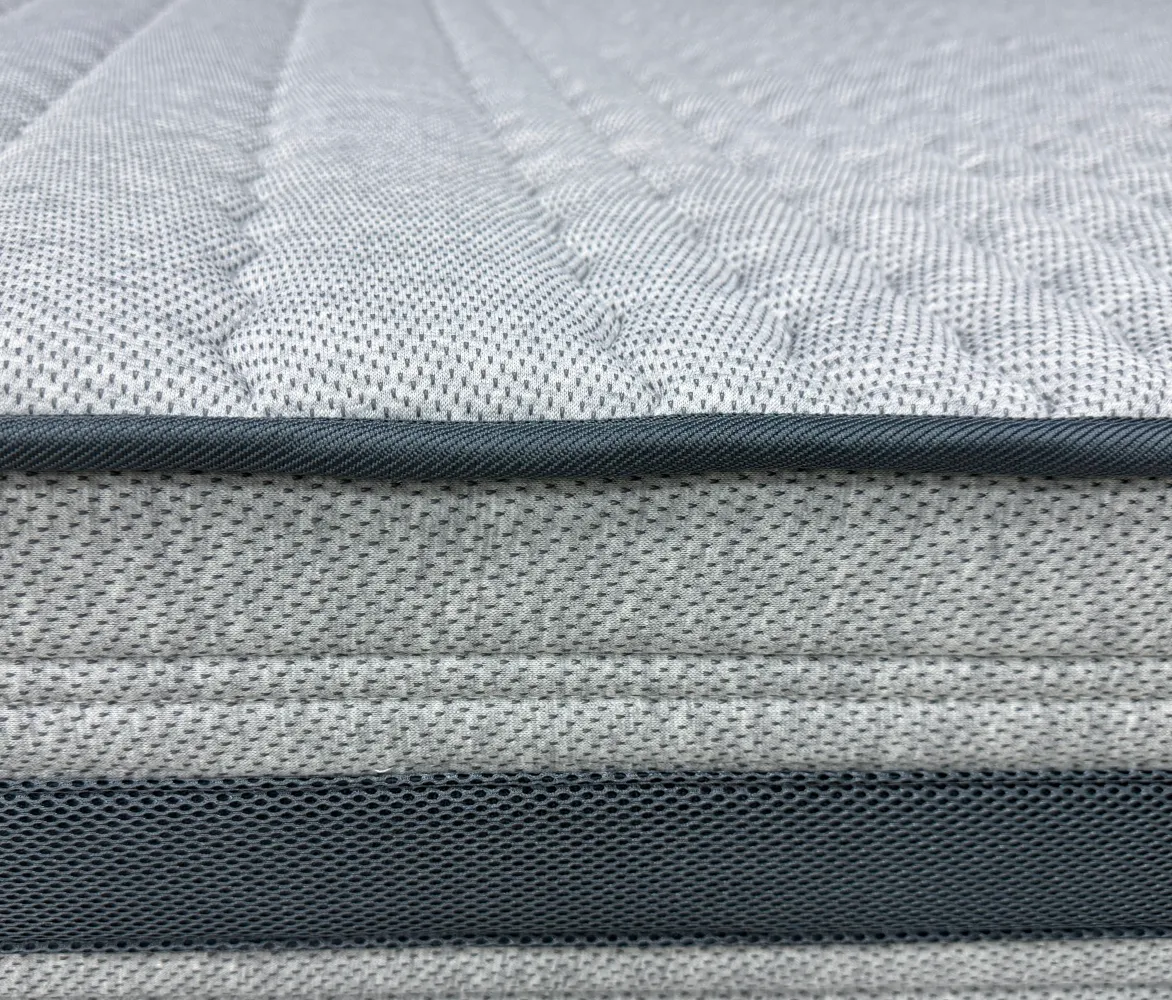 Трикотаж «PESCODY» - Премиальный меланжевый итальянский трикотаж с натуральными волокнами в трендовом приятном сером цвете. Благодаря своей расцветке ткань смотрится стильно и более неприхотлива к незначительным загрязнениям. Натуральные смесовые нити в составе способствуют более эффективному тепло обмену и обладают высокой гигроскопичностью, что обеспечивает комфортный микроклимат спального места